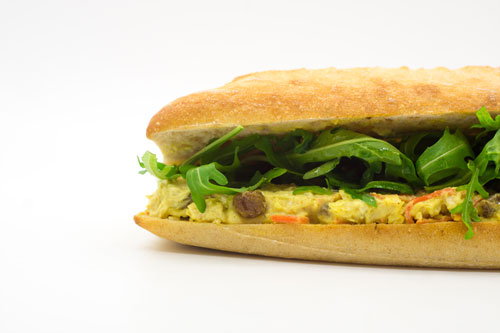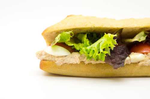 Du thon frais et succulent mélangé à une mayonnaise naturelle, de la moutarde, le tout agrémenté de tomates et salades croquantes.